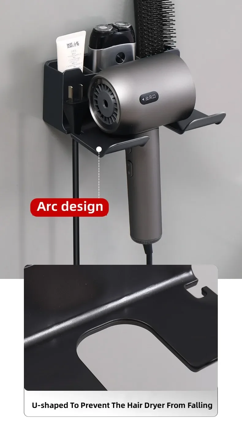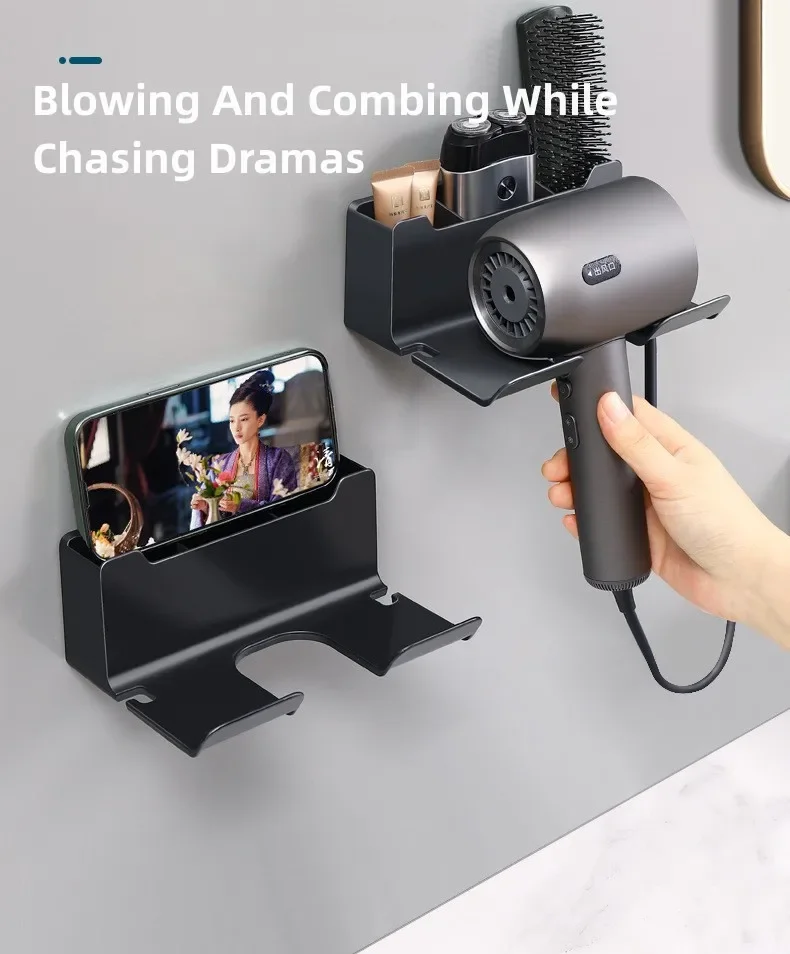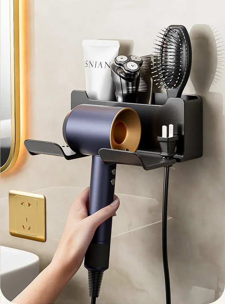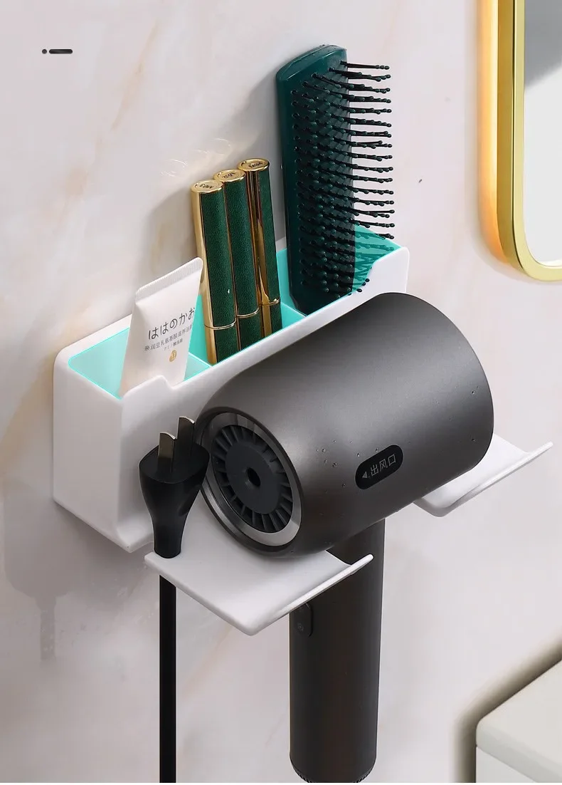 Bathroom wall rack hair dryer holder - Bathroom hair dryer holder storage box - Shower hair dryer and accessory storage rack